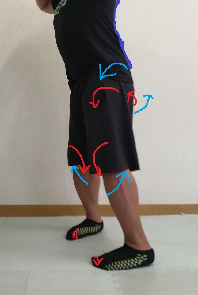 自然と膝やつま先が外に開く